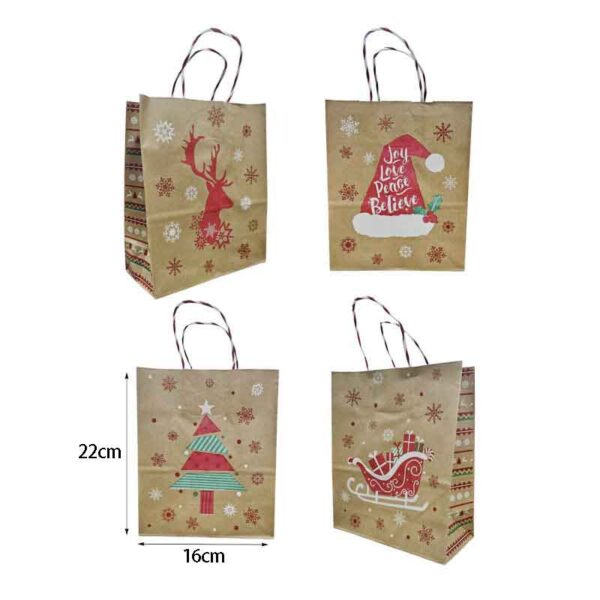 Χριστουγεννιάτικη Χάρτινη Σακούλα Δώρου Kraft 22x16cm 12τμχ – Christmas Kraft Paper Gift Bag