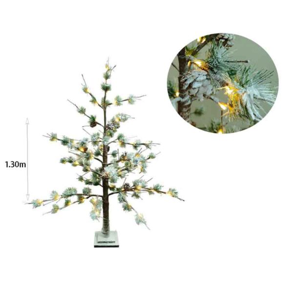 Εντυπωσιακό χριστουγεννιάτικο δέντρο ύψους 1,30m με χιονισμένο εφέ, κουκουνάρια και ενσωματωμένο φωτισμό LED. Είναι αδιάβροχο και κατάλληλο για χρήση σε εσωτερικό και εξωτερικό χώρο. Ο φυσικός του σχεδιασμός με τις λεπτομέρειες χιονιού και το ζεστό φως δημιουργούν μια μαγευτική και γιορτινή ατμόσφαιρα.