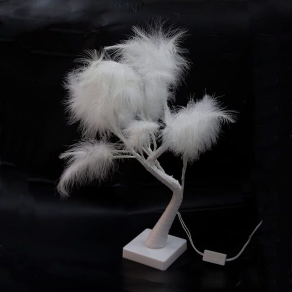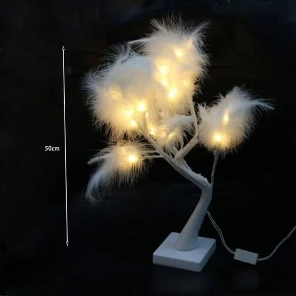 Αυτόφωτο επιτραπέζιο διακοσμητικό δεντράκι με πούπουλα και Led θερμό φωτισμό.