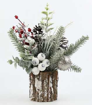 Χριστουγεννιάτικο διακοσμητικό δεντράκι με επιτραπέζια βάση και εντυπωσιακή σύνθεση με στολίδια και υπέροχες ρεαλιστικές λεπτομέρειες. Ύψος: 30cm.