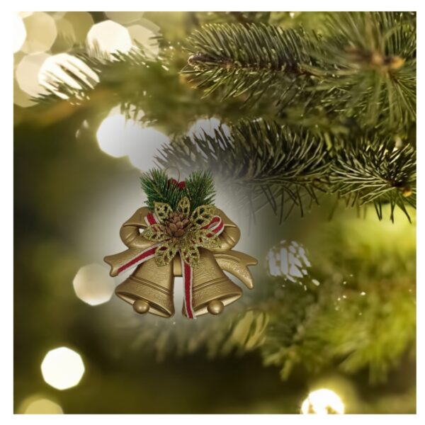 Χριστουγεννιάτικο στολίδι καμπάνες. Ιδανικά για να στολίστε το δέντρο σας και να δώσετε στο χώρο μια γιορτινή ατμόσφαιρα. Σε χρυσό χρώμα. Διαστάσεις 12x11cm.