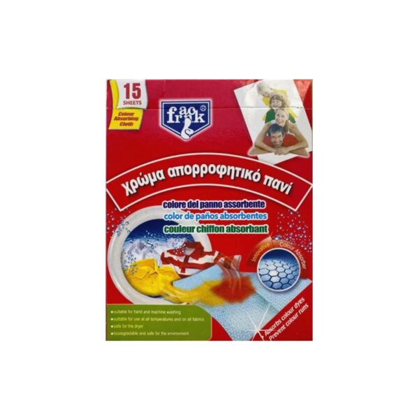Χρωμοπαγίδες πλυντηρίου για την προστασία των ρούχων . Εμποδίζει τη μεταφορά των χρωμάτων. Διαθέτει 15 φύλλα.