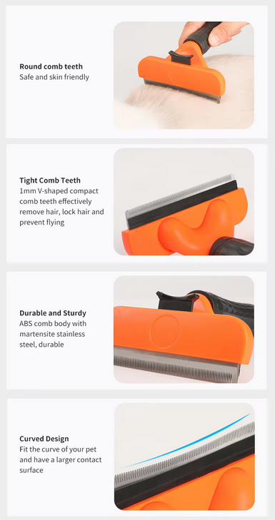 Χτένα βουρτσίσματος κατοικιδίου, σχεδιασμένη με ειδικά δοντάκια από ανοξείδωτο ατσάλι υψηλής ποιότητας, που απομακρύνουν το νεκρό τρίχωμα, απολεπίζουν απαλά και προσφέρουν παράλληλα μια ευχάριστη αίσθηση μασάζ στο κατοικίδιό σας. Με εξαιρετικό σχεδιασμό που δεν γρατζουνάει το δέρμα του κατοικιδίου σας.