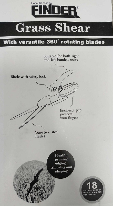 Ψαλίδι κοπής χλόης/γρασιδιού Finder, με εργονομική λαβή κατάλληλο για δεξιόχειρη και αριστερόχειρη χρήση.