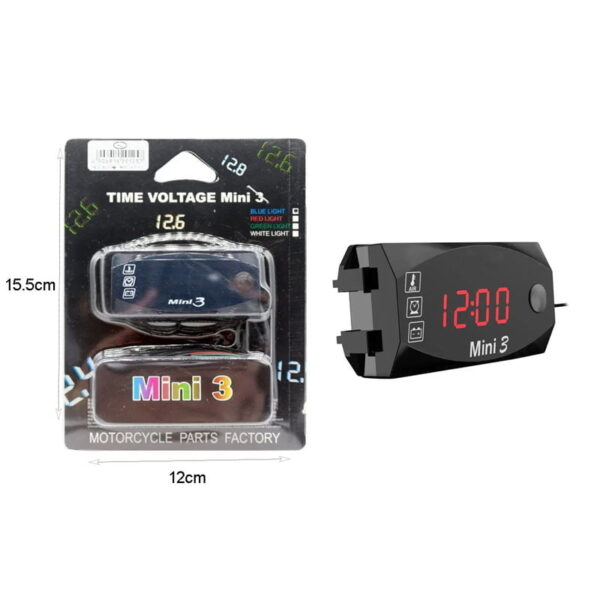 Ψηφιακός μετρητής βολτόμετρο, ρολόι και θερμοκρασίας – Time voltage mini 3