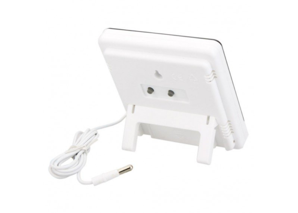 Με επιλογή κλίμακας θερμοκρασίας °C /°F, εμφάνιση υγρασίας εσωτερικού χώρου και θερμοκρασίας εσωτερικού και εξωτερικού χώρου μέσω αισθητήρα, μεγάλη οθόνη lcd με ψηφία ύψους 29mm, λειτουργία ξυπνητηριού, εμφάνιση μετρήσεων ΜIN/MAX . Διαθέτει δυνατότητα επιτοίχιας τοποθέτησης και ειδικό stand στήριξης στη πίσω πλευρά του.