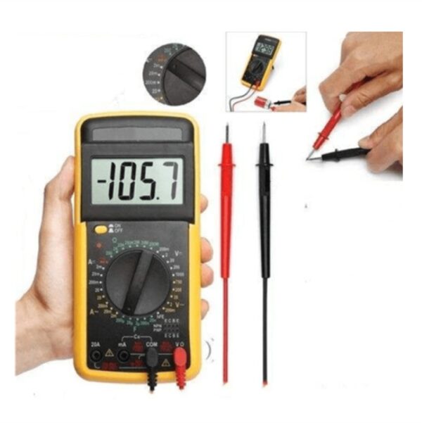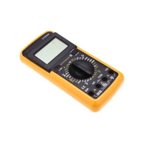Ψηφιακό πολύμετρο με οθόνη LCD. Διαθέτει μέγιστη ένδειξη 1999. Δυνατότητα μετρήσεις εναλλασσόμενης τάσης, συνεχούς ρεύματος και αντίστασης. Διαθέτει ένδειξη χαμηλής τάσης και προστασία κατά της υπερφόρτωσης. Τάση συνεχούς ρεύματος: 200m-2-20-200-600V Τάση AC: 200m-2-20-200-600V DC ρεύμα: 2m-20m-200m-20A AC ρεύμα: 2m-20m-200m-20A Αντοχή: 200-2Κ-20Κ-200Κ-2Μ-20Μ-200Μ Χωρητικότητα: 20n-200n-2u-20u-200uF
