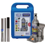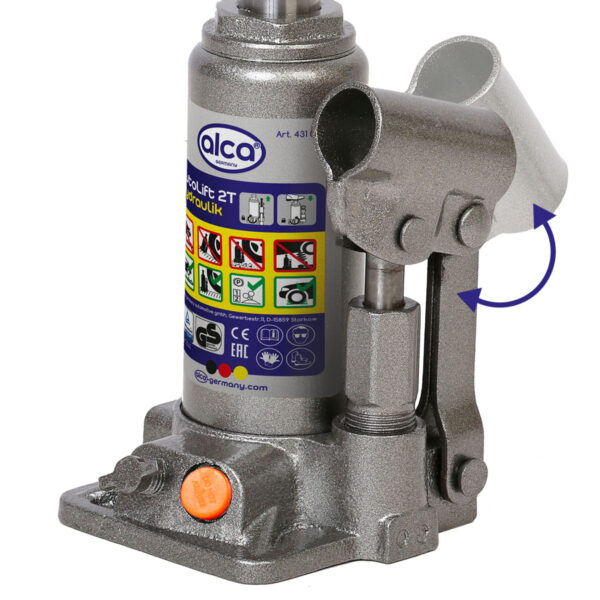 Υδραυλικός γρύλος μπουκάλας της ALCA ιδανικός για την ανύψωση αντικειμένων όπως αυτοκίνητα, με δυνατότητα ανύψωσης έως 31cm και μέγιστό βάρος 2 τόνους.