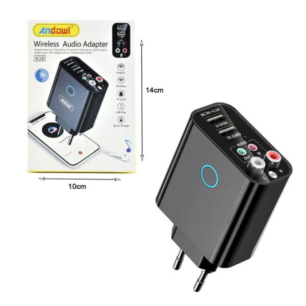 Andowl Ασύρματος Αναμεταδότης Ήχου Μπριζάκι Bluetooth K16 – Wireless Audio Adapter