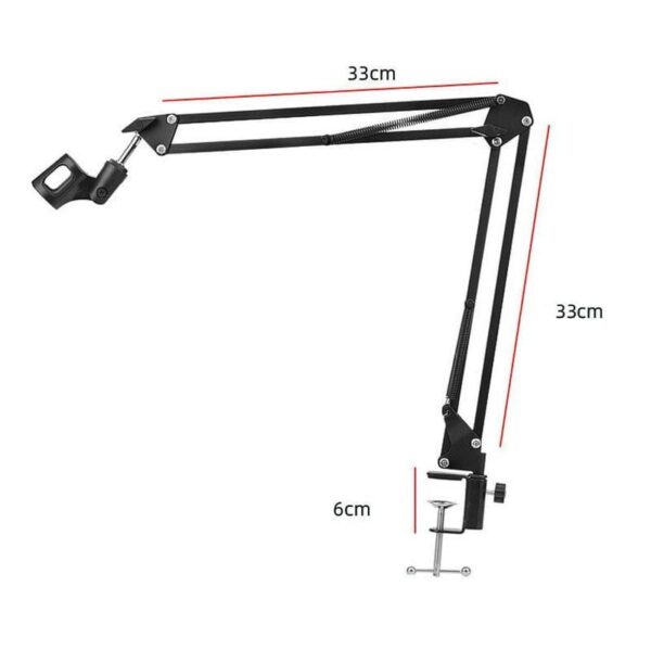 Ρυθμιζόμενο σταντ μικροφώνου από ατσάλι Andowl Q-A192, με μπράτσο τύπου ψαλίδι και πλαστικό κλιπ για το μικρόφωνο.