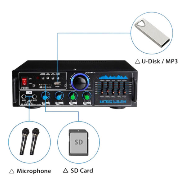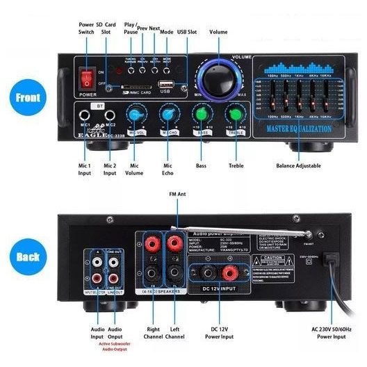 Ζήσε την απόλυτη εμπειρία ήχου με τον ισχυρό ενισχυτή karaoke Andowl Q-GF289, ιδανικό για πάρτι, εκδηλώσεις ή ακόμη και επαγγελματική χρήση. Με υψηλή ισχύ 2000W, προσφέρει καθαρό και δυνατό ήχο που γεμίζει τον χώρο, ενώ η έξοδος 2 καναλιών εξασφαλίζει στερεοφωνική απόδοση υψηλής ποιότητας.