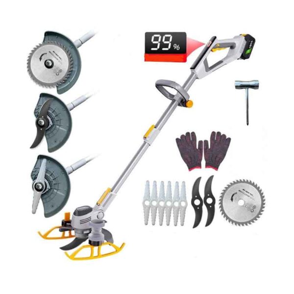 Περιλαμβάνονται: Πλαστικές και μεταλλικές λεπίδες, γάντια, φορτιστής, 2 μπαταρίες, εργαλεία συναρμολόγησης