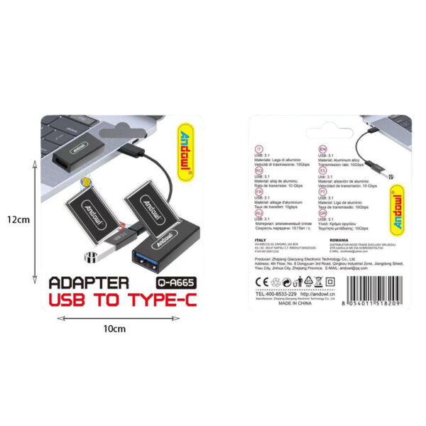 Andowl Μετατροπέας Αντάπτορας Type-C σε USB Q-A665 – USB to Type-C Converter