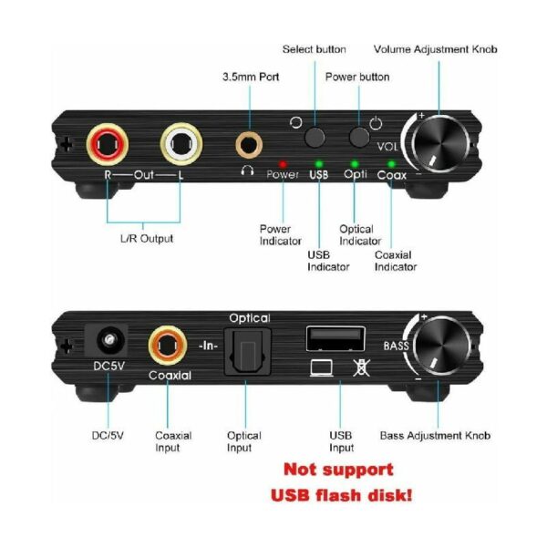Μετατροπέας ψηφιακού σε αναλογικό ήχο της ANDOWL με έλεγχο μπάσου και έντασης. Ο μετατροπέας της ANDOWL προσφέρει ένα ευρύ φάσμα επιλογών συνδεσιμότητας (USB, Coaxial, Optical), το οποίο πρακτικά σημαίνει ότι ο ήχος της πλατφόρμας σου θα βελτιωθεί άμεσα.