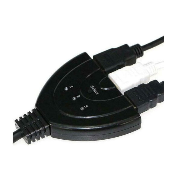 HDMI switch 3 θύρες σε 1. Διαθέτει τρεις εισόδους και μια έξοδο HDMI και μεταφέρει βίντεο υψηλής ευκρίνειας, σε πολλαπλές αναλύσεις μέχρι 4Κ από 3 πηγές σε οθόνη υψηλής ευκρίνειας. Μπορείτε να το χρησιμοποιήσετε με συσκευές αναπαραγωγής όπως HD-DTV και προτζέκτορα. Με κουμπί που σας επιτρέπει να επιλέξετε εναλλαγή μεταξύ των συσκευών HDMI. Άριστη ποιότητα εικόνας και ήχου. Μήκος καλωδίου : 98cm. Μέγεθος : 6.5×8.1.5cm.