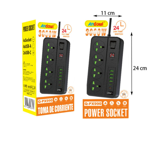 Andowl Πολύμπριζο 4 θέσεων με θύρες USB και Type-C 3000W Q-PX990 – Power Socket