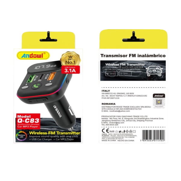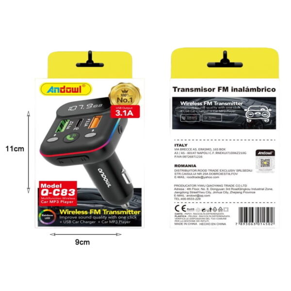 Andowl Πομπός αυτοκινήτου φορτιστής FM Transmitter Q-C83 – Car FM Wireless Transmitter