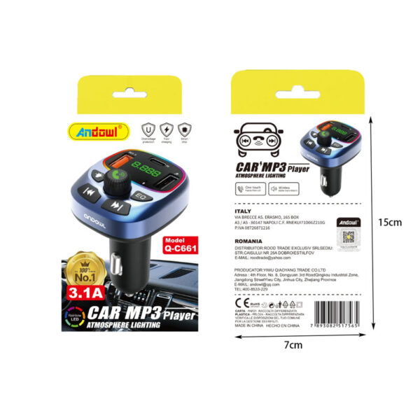 Andowl Πομπός αυτοκινήτου MP3 Player Q-C661 – Car MP3 Player Atmosphere lighting