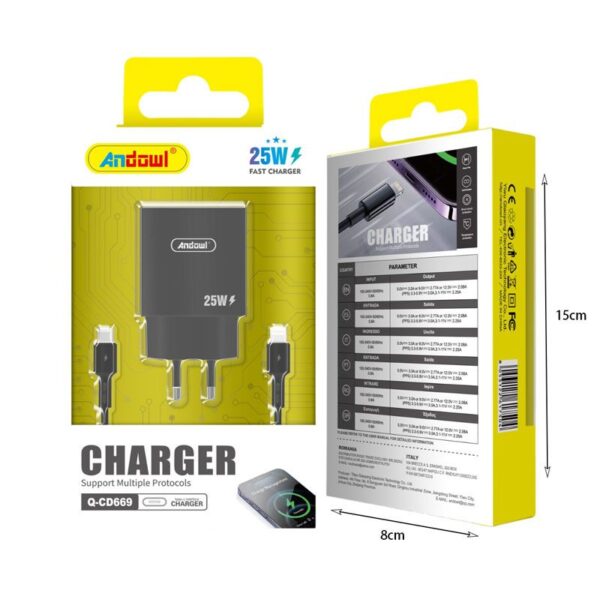 Andowl Φορτιστής Γρήγορης Φόρτισης με Καλώδιο με Θύρα USB-C σε Lightning 25W Q-CD669B – Charger