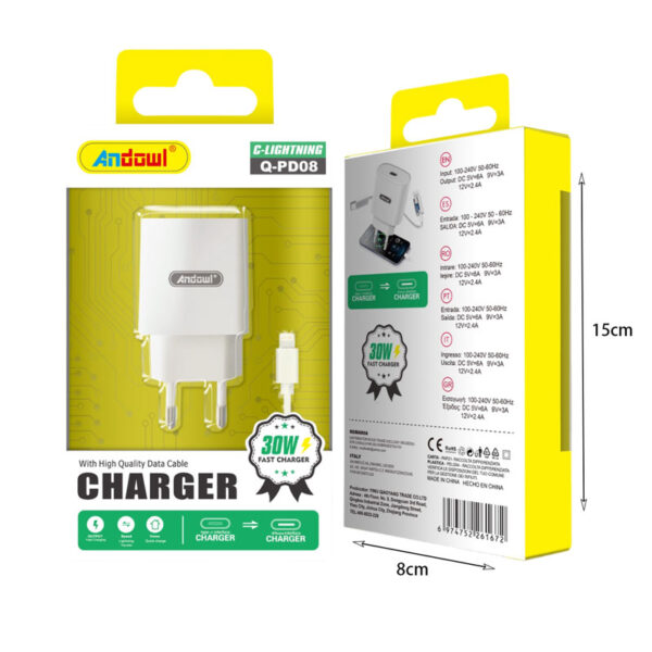 Andowl Φορτιστής με καλώδιο Type-C σε Lightning 30W Q-PD08 – Charger