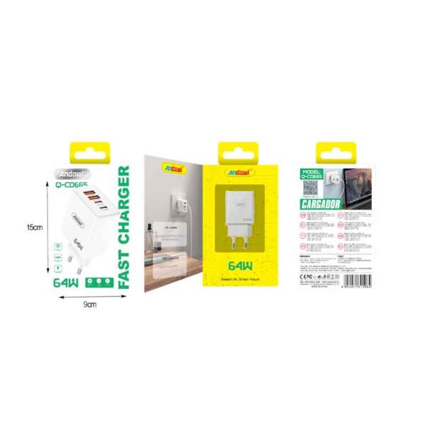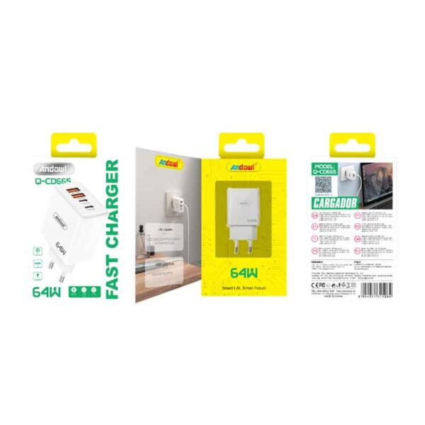 Andowl Φορτιστής Χωρίς Καλώδιο με 2 Θύρες Type-C και 2 Θύρες USB 64W Q-CD665 – Fast charger