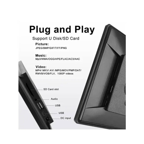- Συμβατά αρχεία: JPG, BMP, PNG, MP3, WMA, MPEG 4, AVI