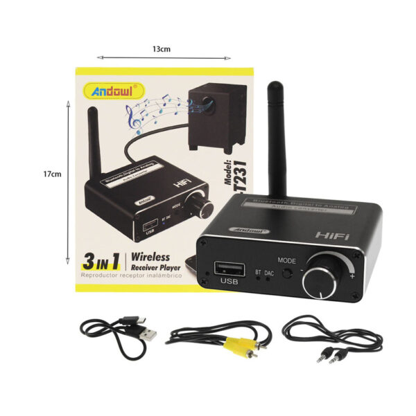 Andowl Bluetooth 5.0 Receiver με θύρα εξόδου USB Q-T231 – 3in1 Wireless Receiver Player
