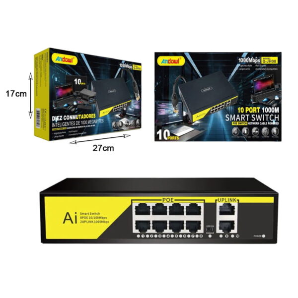 Andowl Q-JH08 Διακόπτης PoE δικτύου 10 θύρες 1000Μ – 10 Port smart switch POE network cable powered