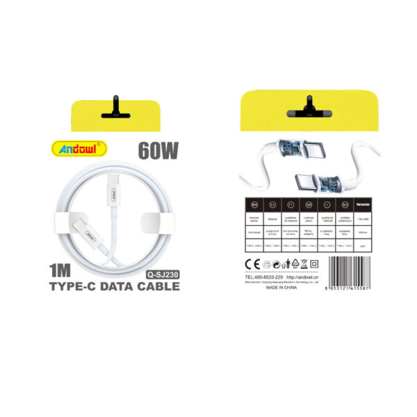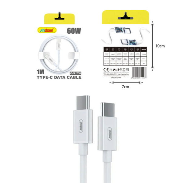 Andowl Q-SJ230 Καλώδιο γρήγορης φόρτισης TypeC 60W PD 1m Λευκό – Data Cable