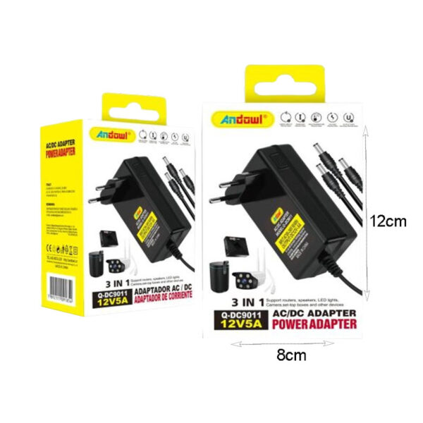 Andowl Universal Τροφοδοτικό 3 σε 1 AC230 σε DC12v 5Amp Q-DC9011 – AC/DC Power Adapter