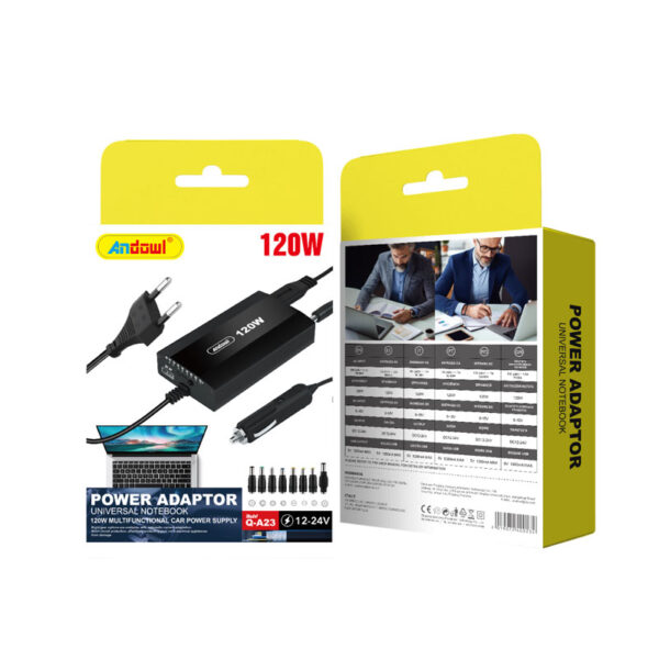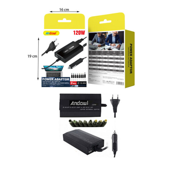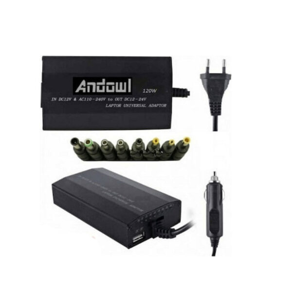 Andowl Universal Φορτιστής Laptop 120W 24V με Αποσπώμενο Καλώδιο Τροφοδοσίας και με σετ βυσμάτων Q-A23 – Power Adaptor