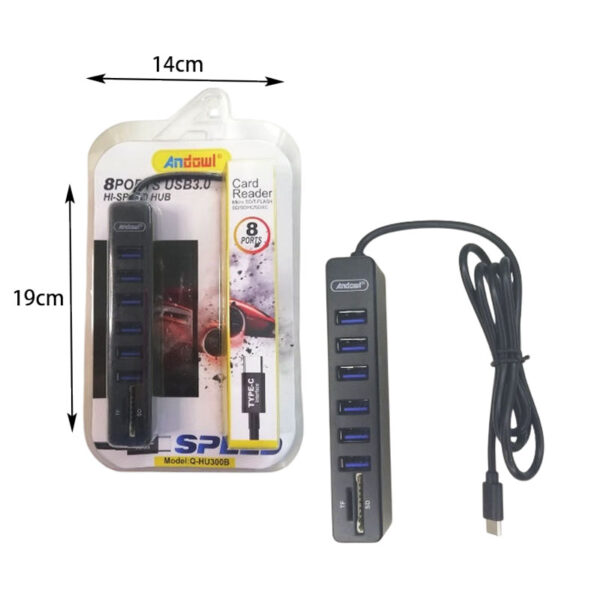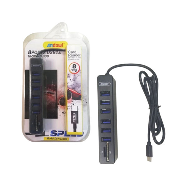 Andowl USB 3.0 Hub 8 Θυρών με σύνδεση USB-C Q-HU300B – Card Reader