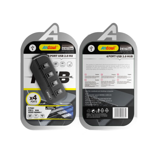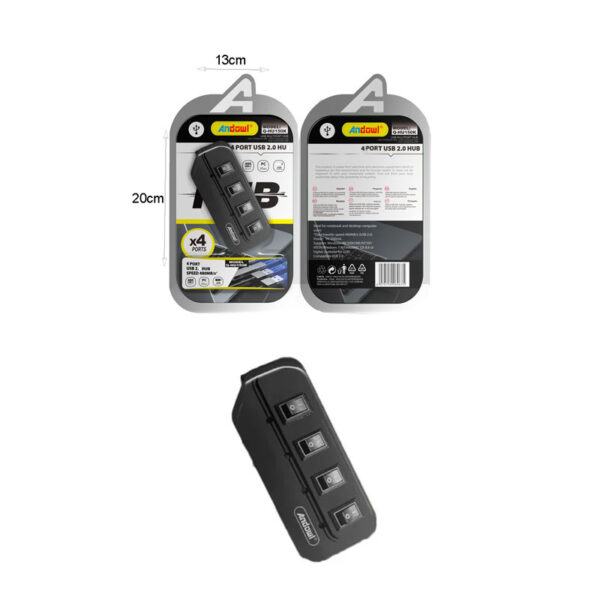 Το USB hub της εταιρείας Andowl διαθέτει 4 θύρες εξόδου USB 2.0, κατάλληλες για να συνδέσετε ταυτόχρονα στον υπολογιστή, συσκευές όπως ποντίκια, στικάκια, εξωτερικούς σκληρούς δίσκους, πληκτρολόγια και πολλά άλλα.
