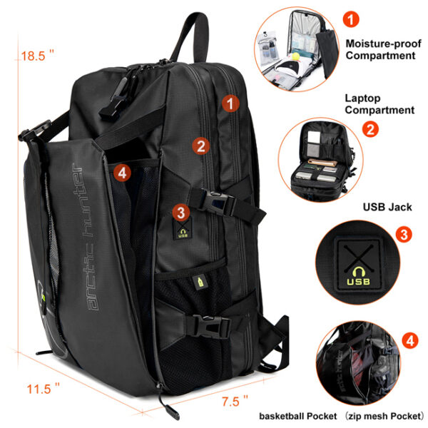 ARCTIC HUNTER τσάντα πλάτης B00391 με θήκη μπάλας & laptop, 26L, μαύρη
