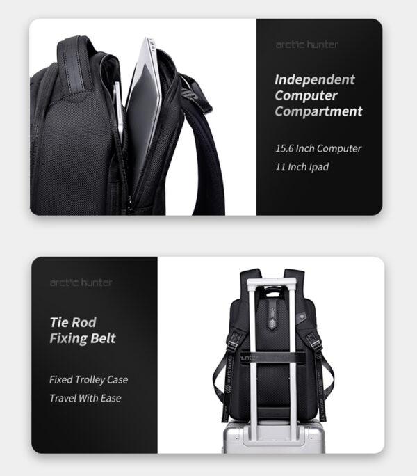 ARCTIC HUNTER τσάντα πλάτης B00490 με θήκη laptop 15.6", 27L, USB, μαύρη