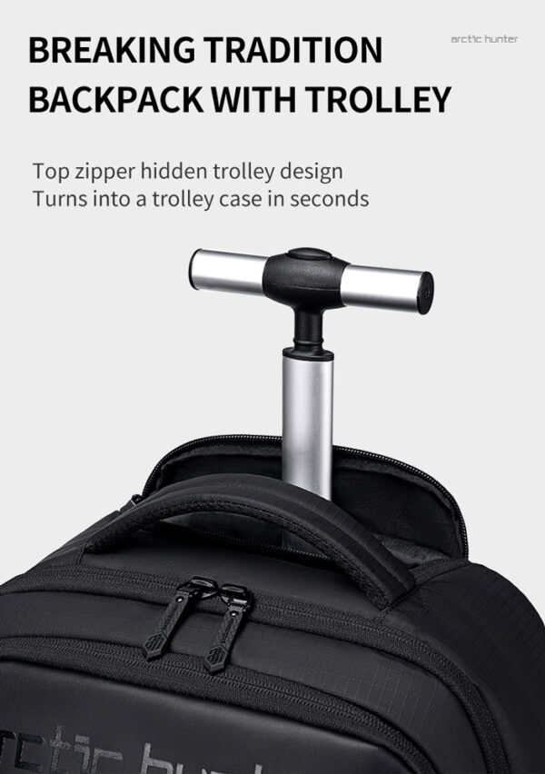 -τροχήλατη τσάντα πλάτης, με πτυσσόμενη λαβή η οποία μπορεί να συμπτυχθεί πλήρως, εντός της τσάντας
