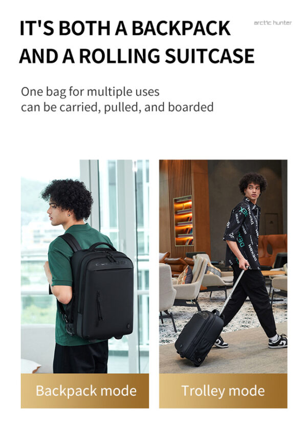 ARCTIC HUNTER τσάντα ταξιδίου LG00657-1 με θήκη laptop 15.6", τροχήλατη, 27L, μαύρη