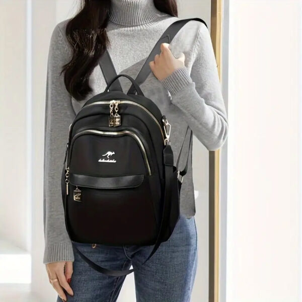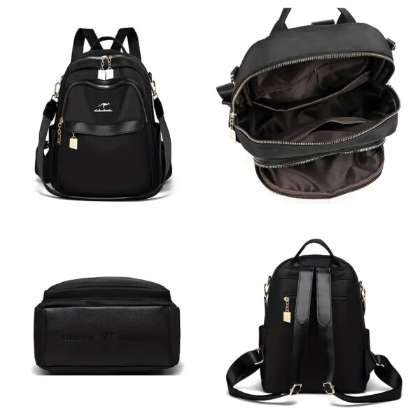 Τσάντα πλάτης με μοντέρνο design, σε μαύρο χρώμα. Διαθέτει πολλές εσωτερικές και εξωτερικές τσέπες, για να τοποθετήσετε τα προσωπικά σας αντικείμενα.