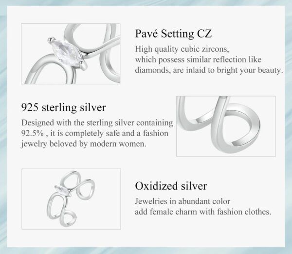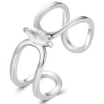 Εντυπωσιακό δαχτυλίδι σε σχήμα πεταλούδας, διακοσμημένο με αστραφτερή κυβική ζιρκόνια, λευκού χρώματος, η οποία αντανακλά μοναδικά το φως και προσφέρει λάμψη στο κόσμημα.