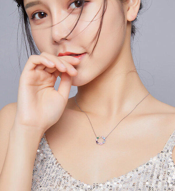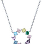 Κομψό κολιέ, διακοσμημένο με κυβική ζιρκόνια σε διάφορες κοπές και εντυπωσιακά χρώματα, η οποία προσφέρει μοναδική λάμψη στο κόσμημα και προσδίδει στυλ σε κάθε εμφάνιση.