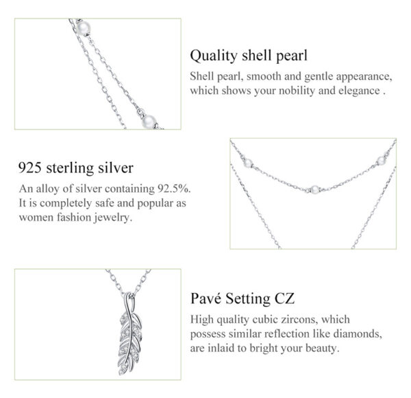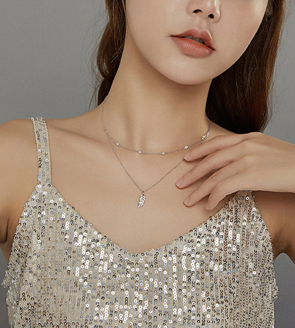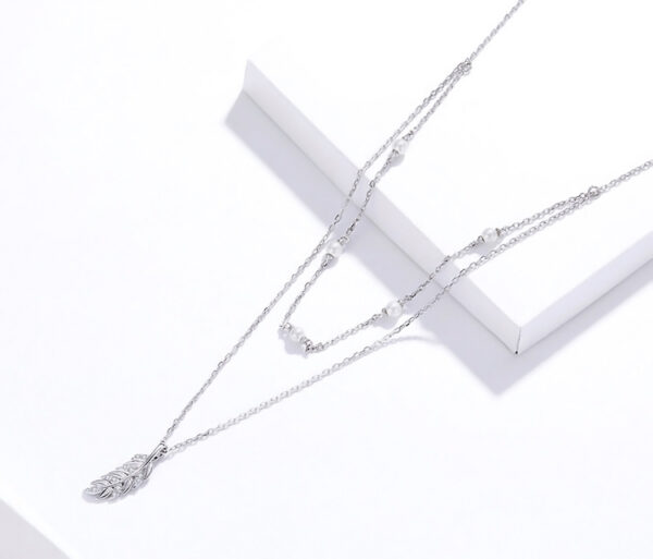 Εντυπωσιακό κολιέ, με ιδιαίτερο και μοναδικό design. Διαθέτει δυο αλυσίδες, η μία διακοσμημένη με πέρλες και η άλλη με μενταγιόν σε σχήμα φτερού, διακοσμημένο με κυβική ζιρκόνια που αντανακλά μοναδικά το φως και προσφέρει λάμψη στο κόσμημα.