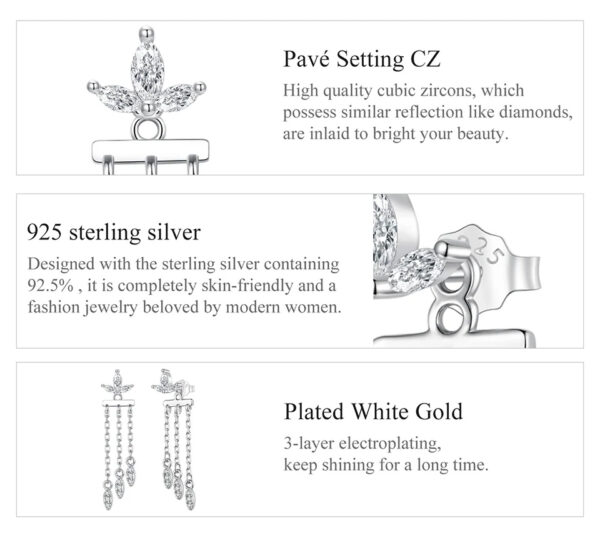 Μοντέρνα σκουλαρίκια καρφωτά Bamoer, κατασκευασμένα από ασήμι 925 και διακοσμημένα με αστραφτερή κυβική ζιρκόνια.