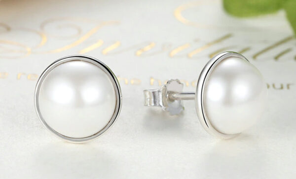 Καρφωτά σκουλαρίκια Bamoer κατασκευασμένα από ασήμι 925, διακοσμημένα με εντυπωσιακή λευκή πέρλα.