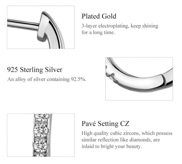 Σκουλαρίκια κρίκος Bamoer κατασκευασμένα από ασήμι 925, διακοσμημένα με αστραφτερή κυβική ζιρκόνια, λευκού χρώματος.