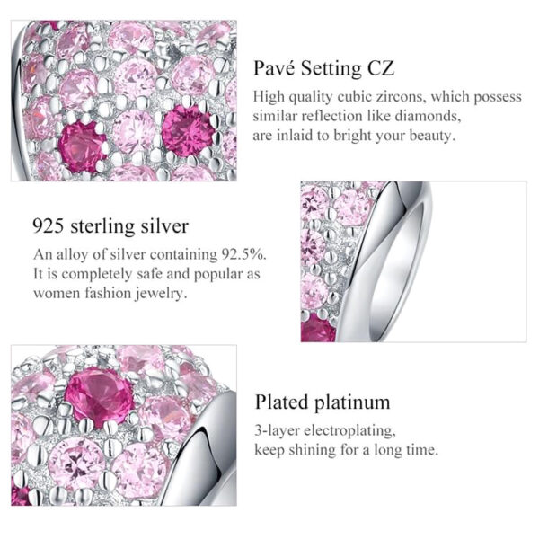 Υπέροχο charm τύπου Pandora για βραχιόλι της Bamoer, με μοντέρνο σχεδιασμό σε σχήμα καρδιάς, κατασκευασμένο από ασήμι 925, διακοσμημένο με αστραφτερή κυβική ζιρκόνια ροζ χρώματος.