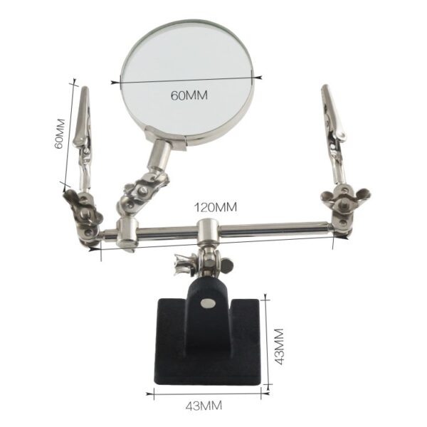 Ο μεγεθυντικός φακός έχει διάμετρο 60mm και το συνολικό άνοιγμα της βάσης μπορεί να φτάσει και στα 140mm.