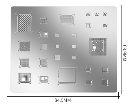 Stencil υψηλής ποιότητας για reballing συσκευών iPhone. Περιλαμβάνει όλα τα εξαρτήματα BGA του κινητού και το πάχος του είναι μόλις 0.33mm.