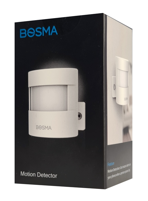 Ο ανιχνευτής κίνησης Bosma ανιχνεύει με ακρίβεια τις κινήσεις του ανθρώπινου σώματος με εμβέλεια έως 12m και γωνία κάλυψης έως 110°. Όταν ανιχνευτεί κίνηση, μια ειδοποίηση push θα σταλεί αμέσως στην smartphone συσκευή σας