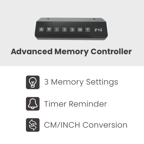 Το ύψος του γραφείου μπορεί να ρυθμιστεί με την χρήση των πλήκτρων στο χειριστήριο ελέγχου, επιτρέποντας σας να εργαστείτε σε καθιστή ή όρθια στάση, ανάλογα με τις ανάγκες σας. Ο ισχυρός κινητήρας ανύψωσης παρέχει ομαλή, σταθερή λειτουργία με μηδενικούς κραδασμούς κατά τις μεταβάσεις.