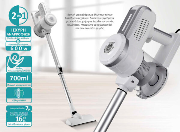 BRUNO ηλεκτρική σκούπα 2 σε 1 BRN-0133, 600W, λευκή-ασημί